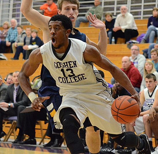 Two of the best players in the Crossroads League #13 Jerron Jamerson (Goshen College) and #3 Rob Hogans (Spring Arbor) matchup.
